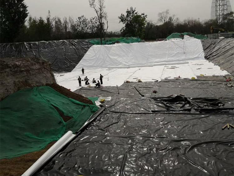 1、應從底部向高位延伸,不要拉得太緊,應留有1.50%的余幅,以備局部下沉拉伸??紤]到本工程的實際情況,邊坡采取從上到下的鋪設順序;